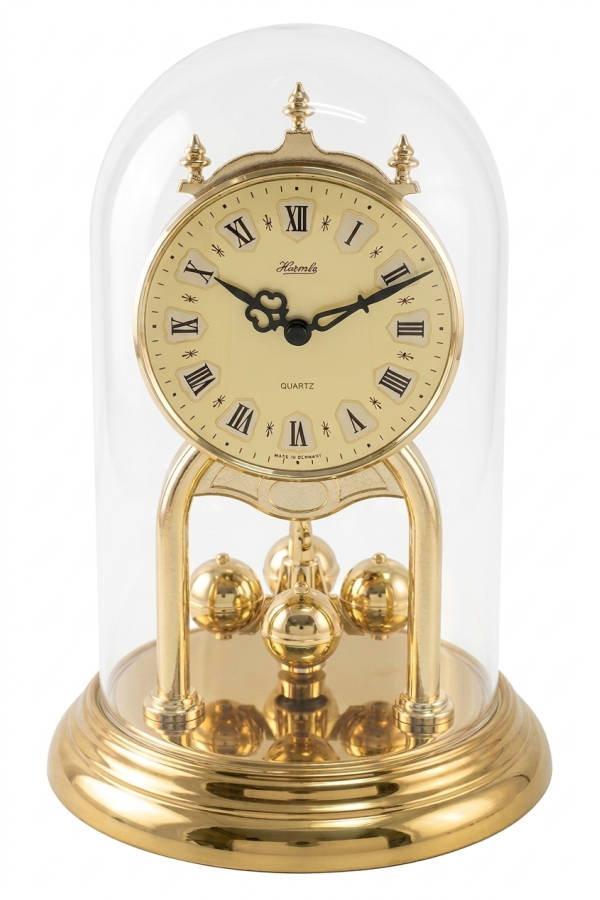 • Klok 85072-002300 is een jaarpendule stolpklok in een messing gekleurde uitvoering met een glazen stolp.