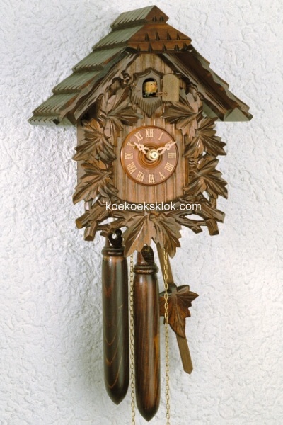 • Koekoeksklok hoogwaardig handgesneden met bladeren, de gewichten zijn van hout.