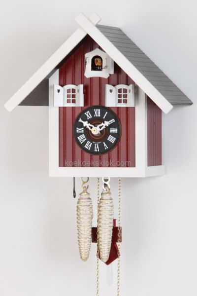 Deze koekoeksklok is uitgerust met een 1-daags mechanisch uurwerk dat functioneert op twee gewichten, die eenmaal per dag moeten worden opgetrokken. Het uurwerk maakt gebruik van een verfijnd systeem van tandwielen, gewichten en een slinger om de tijdsweergave en de koekoeksroep nauwkeurig aan te sturen.