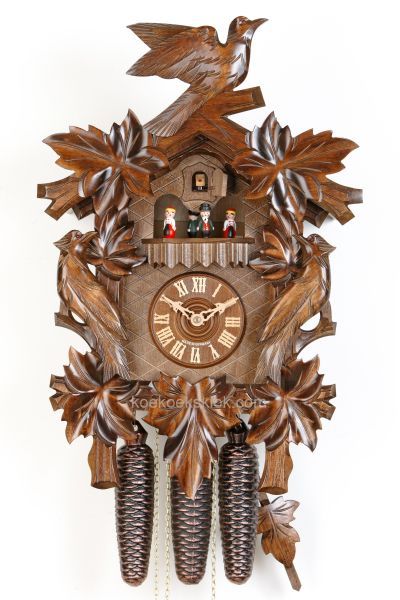 • Koekoeksklok met vogels, bladeren en draaiende danspoppen.