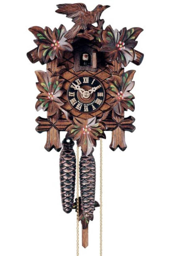 • Handbeschilderde koekoeksklok met vogel en 5 bladeren.