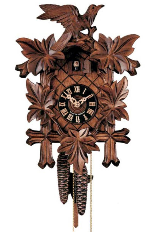 • Uitgevoerd met houten vogel, wijzerplaat, cijfers, wijzers en een slagafstelling.