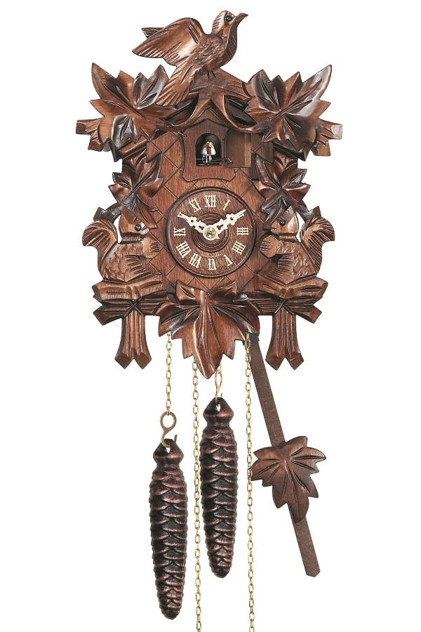 • Koekoeksklok met vogel, 5 bladeren en eekhoorns.