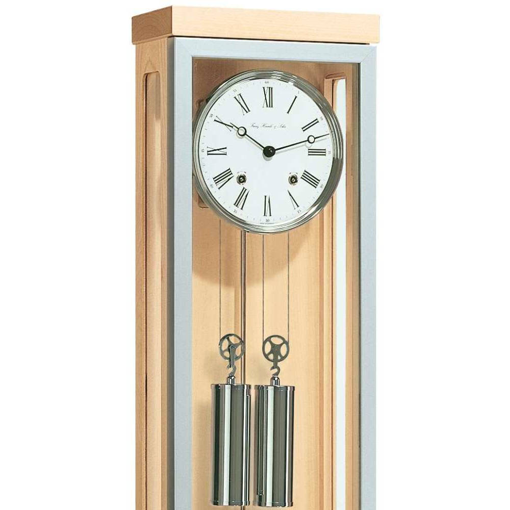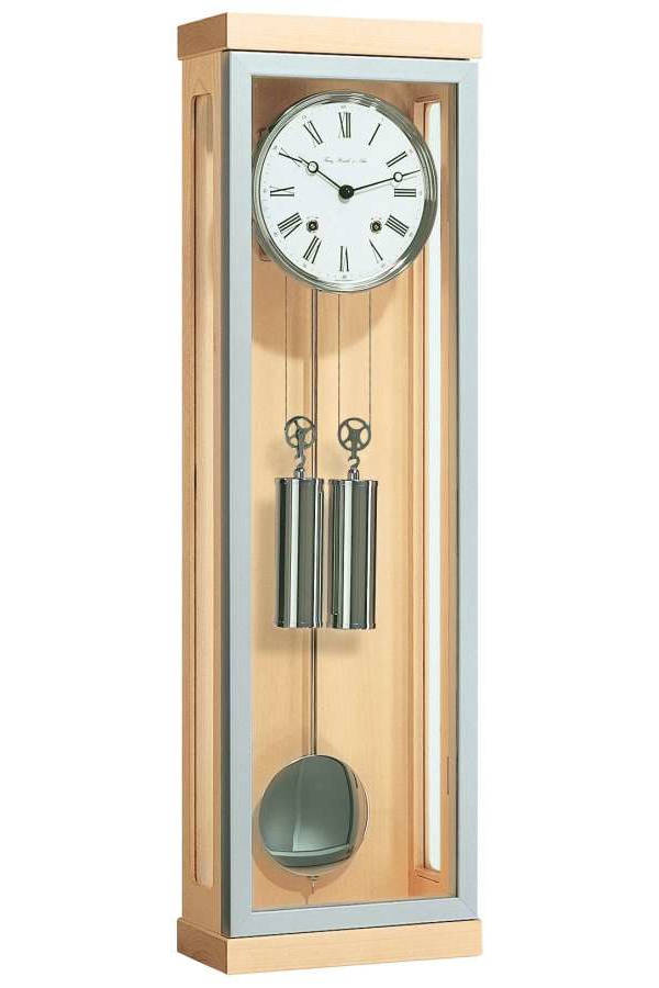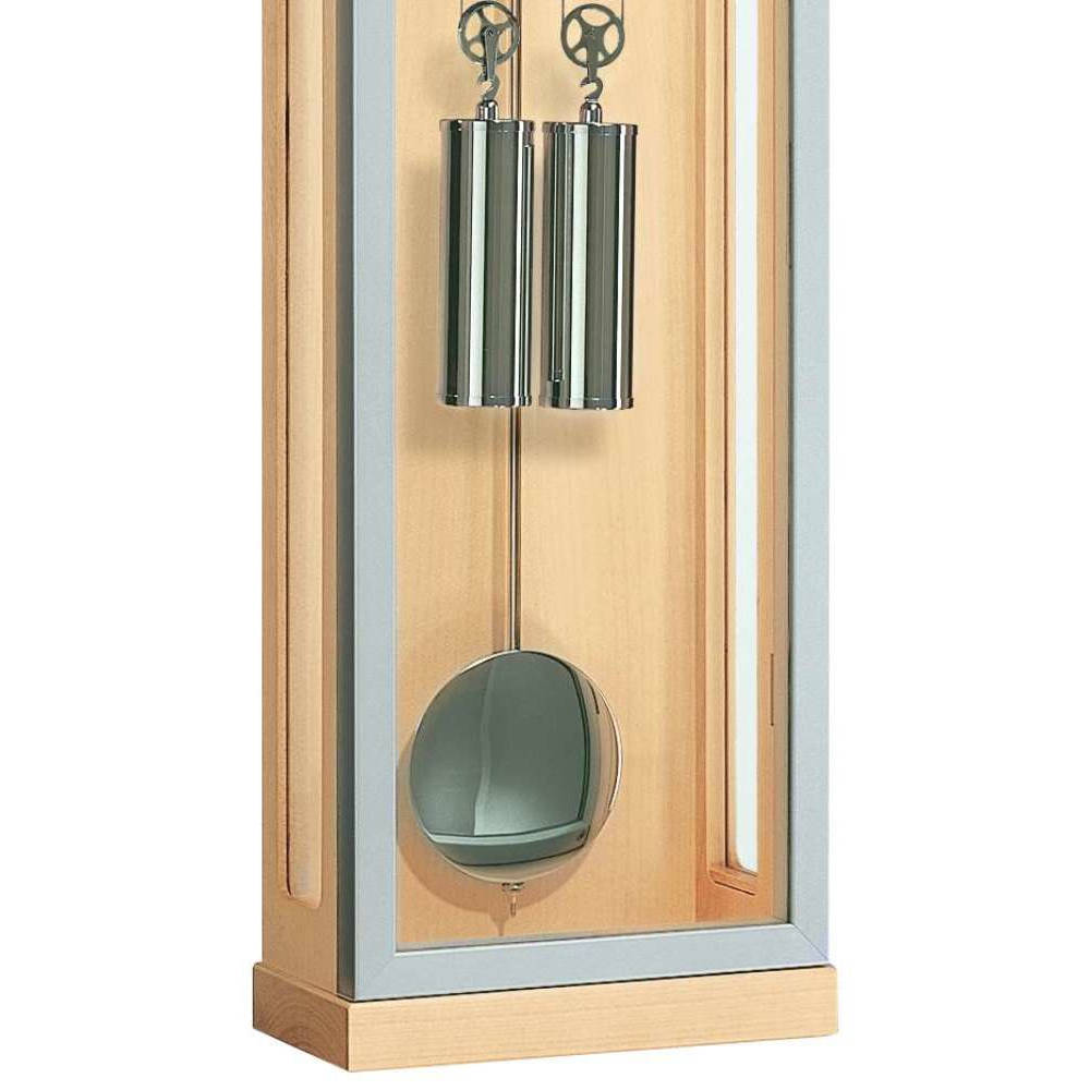 • Klok 70757-090058 is een snaarregulateur in een massieve ahornhouten uitvoering met een geborstelde metalen omlijsting van de deur.