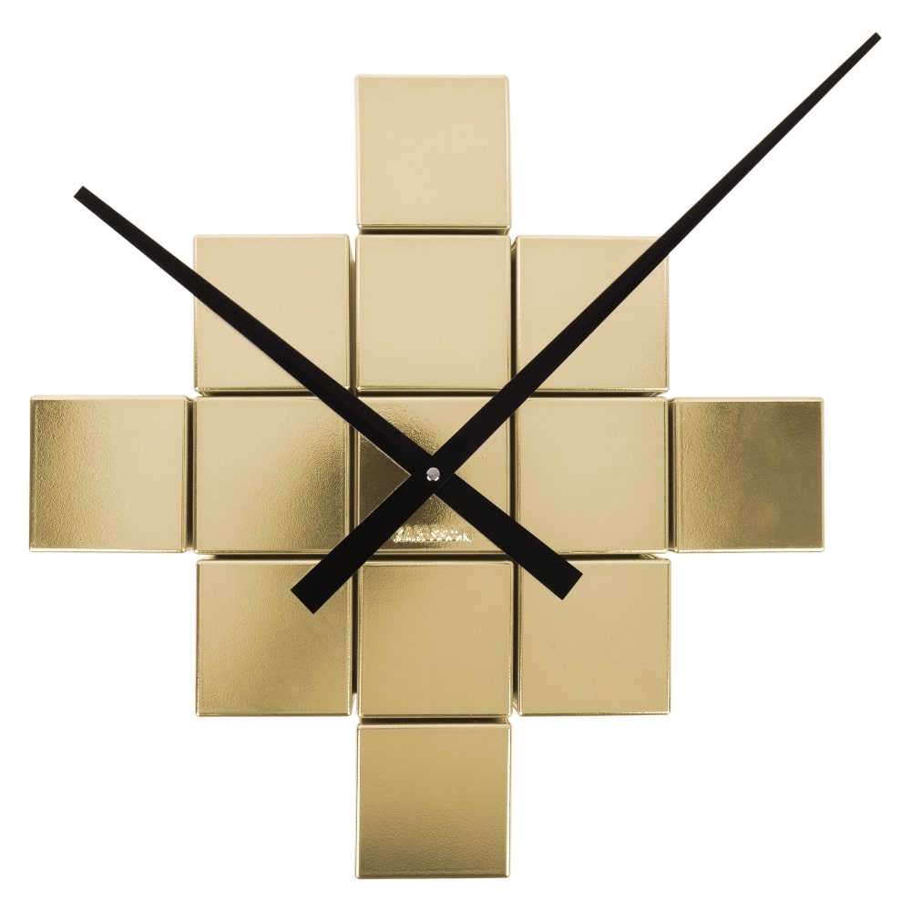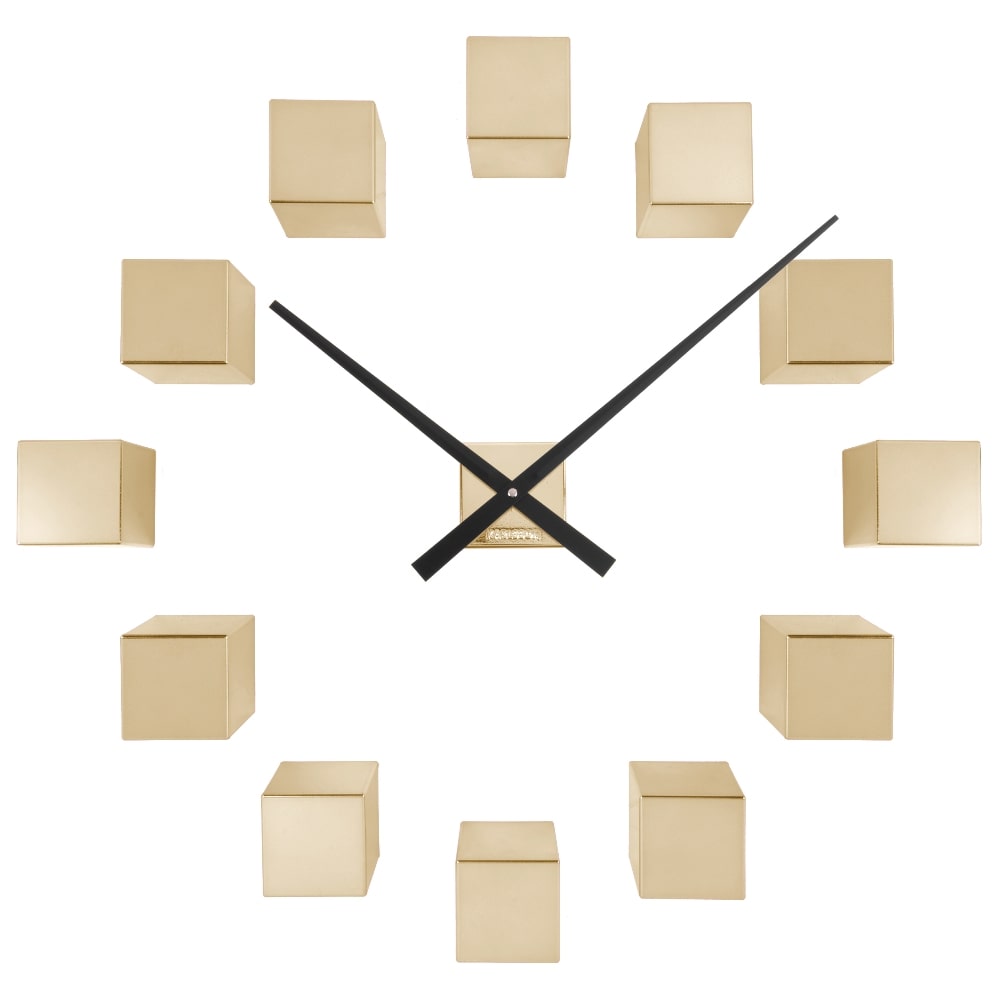 • Klok KA5974GD is een DIY (do it yourself) wandklok bestaande uit glanzende goudkleurige vierkante urenmarkeringen om op de muur te bevestigen.