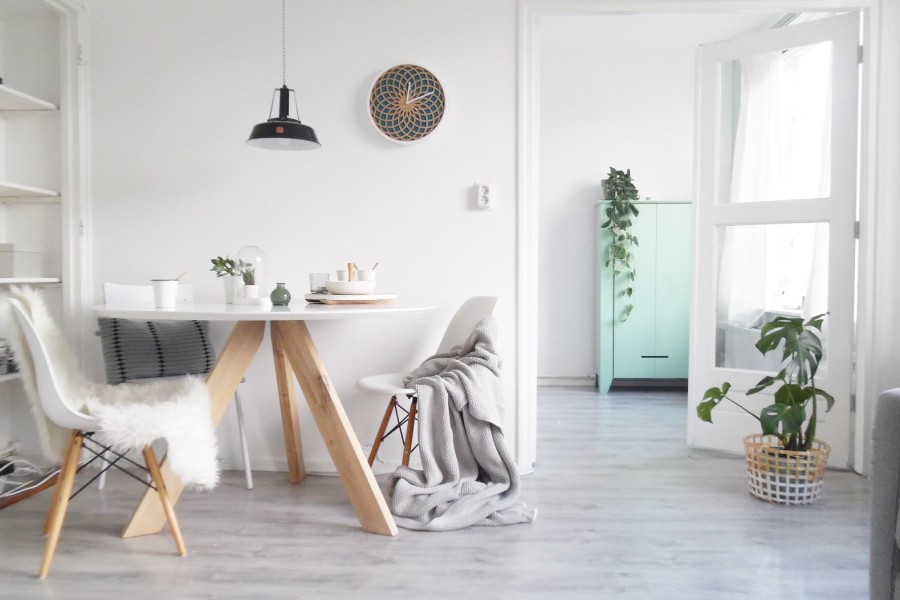 • Klok NE3149TQ is een grote wandklok met een wit gelakte houten rand en een wijzerplaat van turquoisekleurig stof.