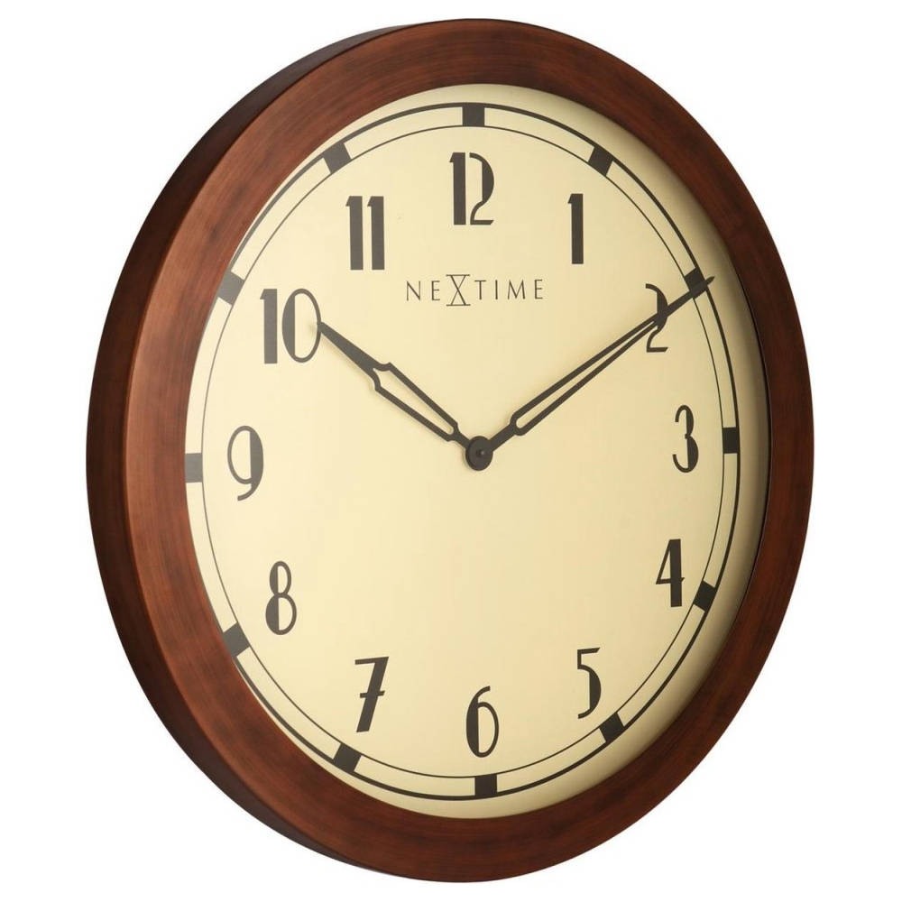 • Klok NE3057 is een grote wandklok met een antiek stijl mat bruin gelakte metalen rand.