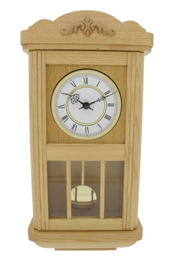 • Klok 140-1230 is een mini regulateur wandklok in een licht eikenhouten uitvoering.