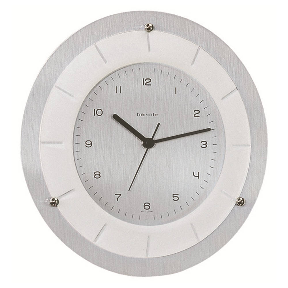 • Klok 30727-002100 is een wandklok in een gematteerde aluminium uitvoering met zwarte opgedrukte cijfers en zwarte wijzers.