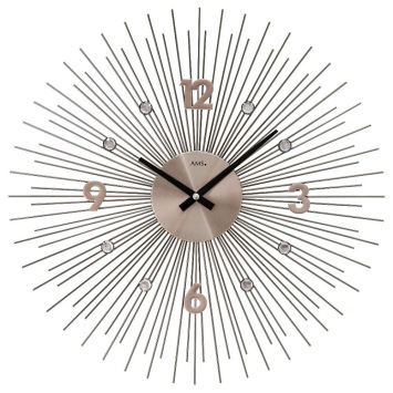 • Klok 9610 is een design wandklok met glanzende antraciet-zilver gekleurde metaalstaven, geslepen glasstenen, gematteerde aluminium wijzerplaat en cijfers.