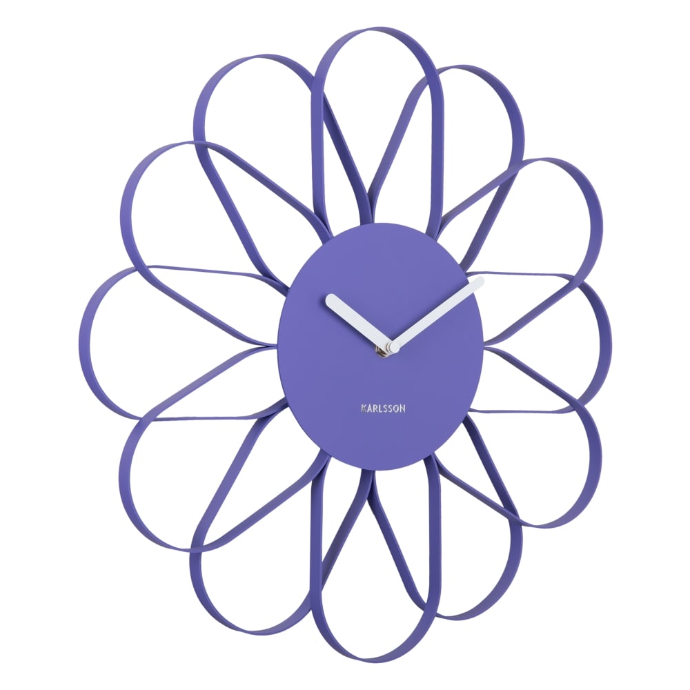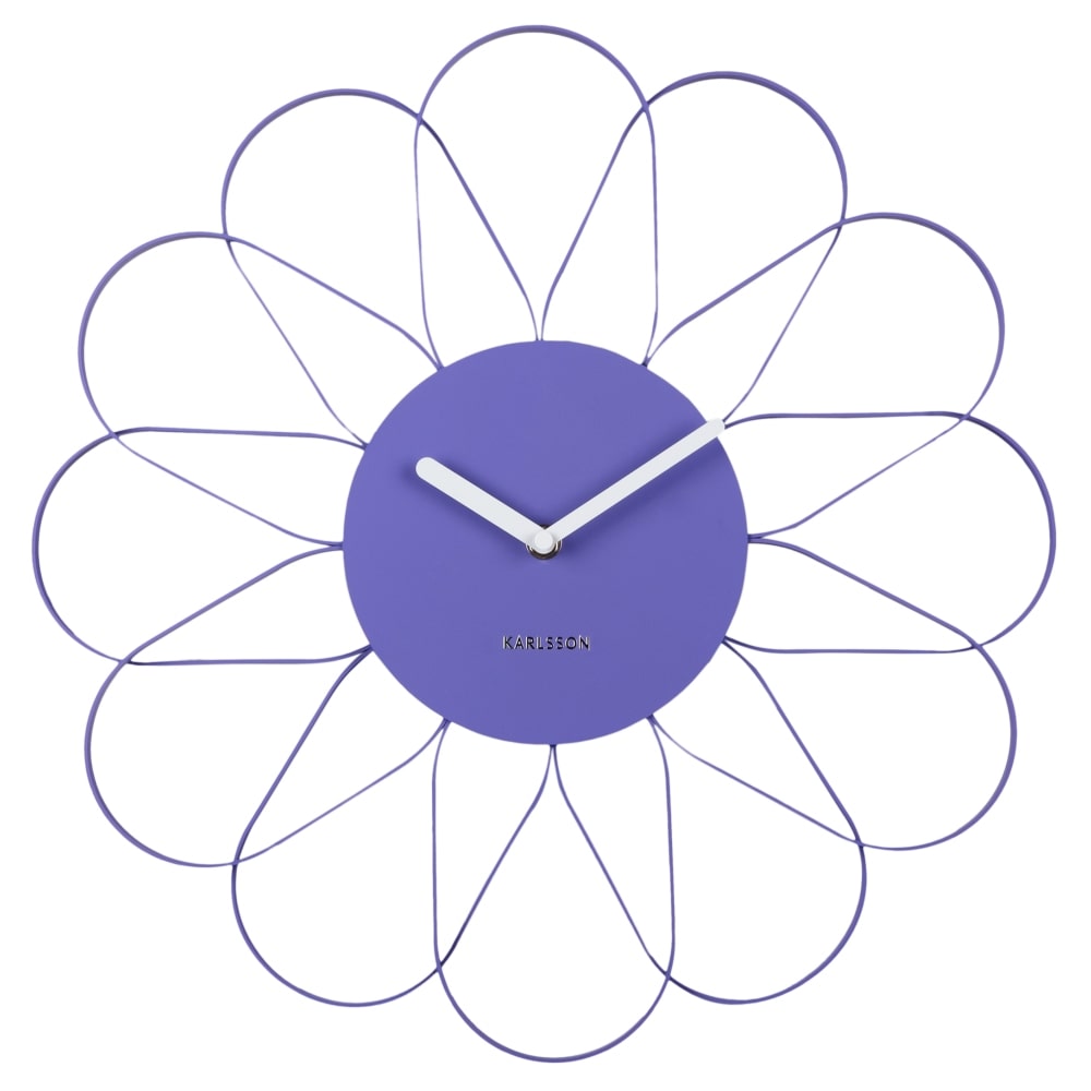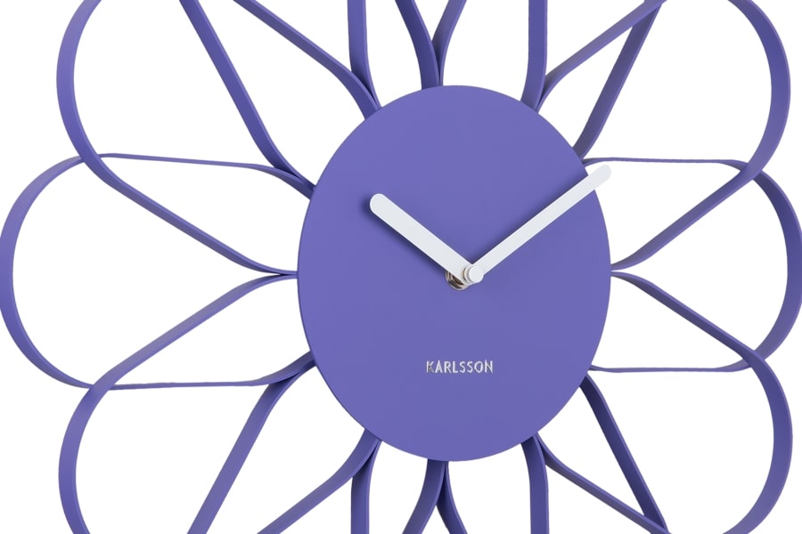 • Klok KA5975PU is een mat paars gelakte wandklok met een bloemvormig design van metaal met witte metalen wijzers.