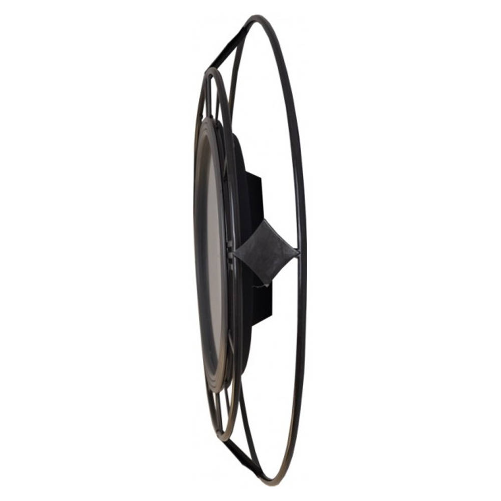 • Klok NE2878 is een grijze antiek stijl gemaakte smeedijzeren wandklok met een witte wijzerplaat bedrukt met grijze urenmarkeringen.