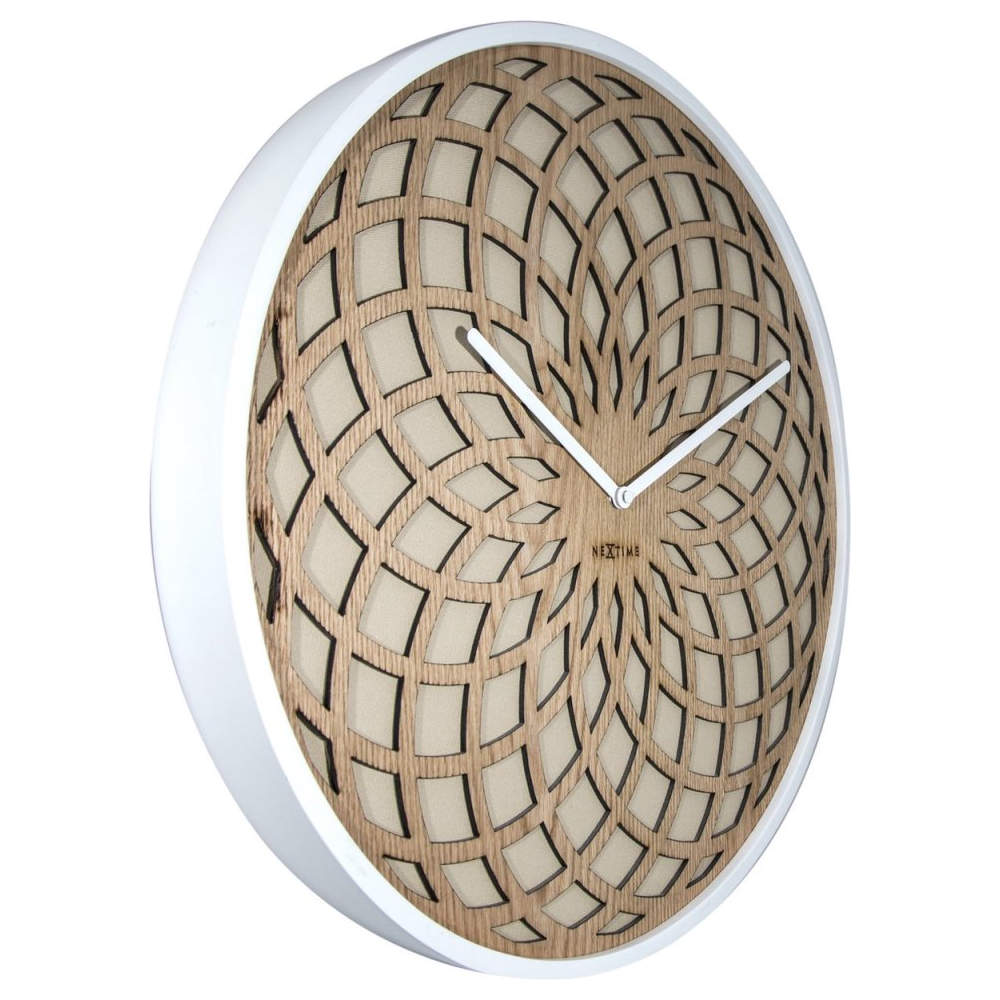 • Klok NE3150BE is een wandklok met een wit gelakte houten rand en een wijzerplaat van stof.