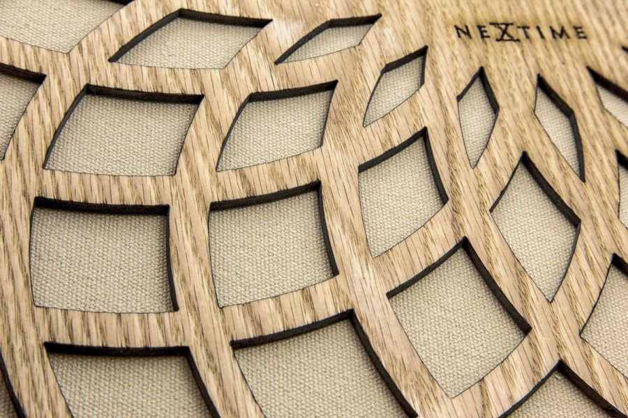 • De wijzerplaat is opgelegd met een uitgelaserd grenen houten mandalapatroon.