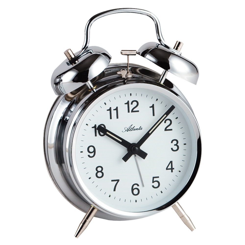 • Wekker 1054-19A is een mechanische bellenwekker in een glanzende zilverkleurige metalen uitvoering.